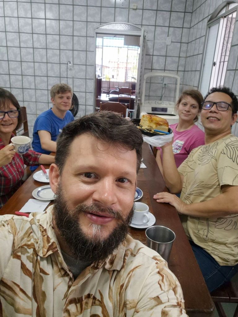 I observe this chattery flyover from my seat in our back yard, which leads me to the Friday night backyard supper. Thank you for praying for this! As Chris mentioned, we have largely been faithful to it, and I believe it is deepening some relationships and opening doors for others. It may also have contributed to some misconceptions about American hot dogs, as Chris recently heard our jiu-jitsu teacher explaining that traditional American hot dog toppings include fresh bell pepper…All I can say is that I’m bound to offer a veggie in there somewhere, and onions don’t count (Pretty sure I have the Spirit on this). So, if you come down to visit, please just play along—and enjoy the piling on of shoestring potato crisps, a very Brazilian addition.